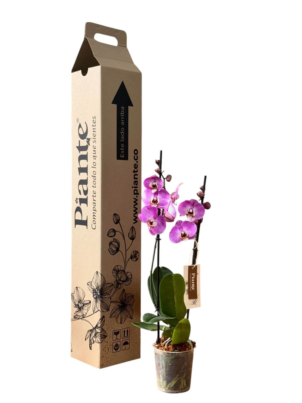 Celebra ocasiones especiales con nuestra Orquídea Supreme. Con una altura de al menos 55 cm y dos varas florales, esta planta ha sido seleccionada por su belleza y calidad superior. Perfecta para expresar gratitud o añadir elegancia a tu espacio, puede florecer hasta dos veces al año y durar hasta tres años con los cuidados adecuados. Cada orquídea se entrega con instrucciones de cuidado detalladas, una caja de transporte diseñada a medida y una nota personalizable. Aunque la floración inicial dura de 3 a 4 meses, el color y frecuencia de las flores pueden variar, haciendo de cada ejemplar una pieza única.